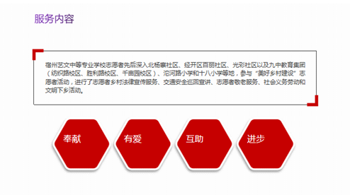 多層次,就是從市到校,從校到級(jí)部,從級(jí)部到班,三個(gè)層次的德育教育相互銜接、互為補(bǔ)充。比如:市級(jí)層面我們和關(guān)工委合作,協(xié)辦了宿州市黨是陽光我是苗書畫展,和交警六大隊(duì)合作,深入到北楊寨、池湖、沱河路小學(xué),開展民法典與交通安全宣講;學(xué)校層面開展了清明祭掃活動(dòng)、組織觀看黨史、新中國(guó)史、改革開放史、社會(huì)主義發(fā)展史宣傳片、開展志愿者服務(wù)活動(dòng)等,班級(jí)層面搜集了很多中職生成功范例進(jìn)行激勵(lì),邀請(qǐng)五老入班講紅色故事,與每一個(gè)節(jié)日相銜接,有計(jì)劃地召開主題班會(huì)等,通過多層次的引導(dǎo),弘揚(yáng)正氣,培養(yǎng)愛心,培養(yǎng)積極向上的人生觀。